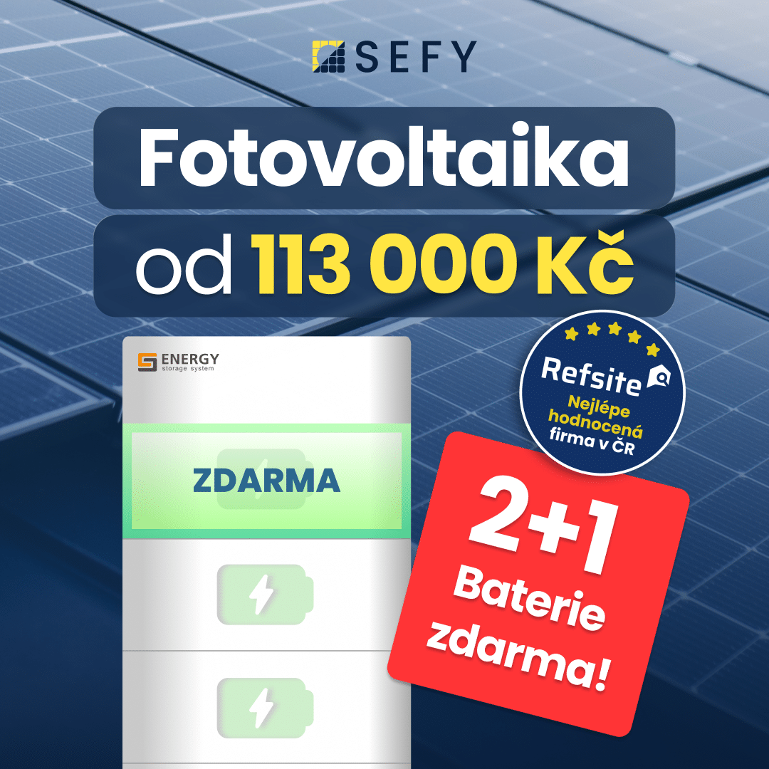 Špičková fotovoltaika od nejlépe hodnocené instalační firmy v oboru? To je fotovoltaika od SEFY. Nyní navíc s baterií zdarma! Když si objednáte fotovoltaickou elektrárnu alespoň se dvěma bateriovými moduly, získáte od nás 1 modul navíc!